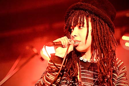 Voor ons meteen een eerste kennismaking met deze trendy venue in de oude fabriekshallen dichtbij het Kiel. Het concert vindt plaats in de Cantin. Niet echt een concertzaal maar eerder een uit de kluiten gewassen café met een gelegenheidspodium dat centraal tegen de muur is opgetrokken. Wat meteen opvalt is dat het podium wel erg benepen overkomt, zeker voor een band met een achtkoppige bezetting. Zeker de blazers stonden schouder aan schouder en dan was de trompettist er deze avond nog niet bij. Voorts zagen wij een volledige bezetting met uiteraard Juli Jupter als zangeres, gitariste en op percussie, drums en bas zijn voor Missing Link en Philip Blackfinger, aan de toetsen staat Jasper Fisherman en Militant Mila is backing vocal en percussioniste. Aan de andere kant van het podium zien we Kingston Echo op gitaar en helemaal achteraan op het randje nog net Jort Sunshine en Wannes Moonlight op respectievelijk alt- en tenorsaxofoon.